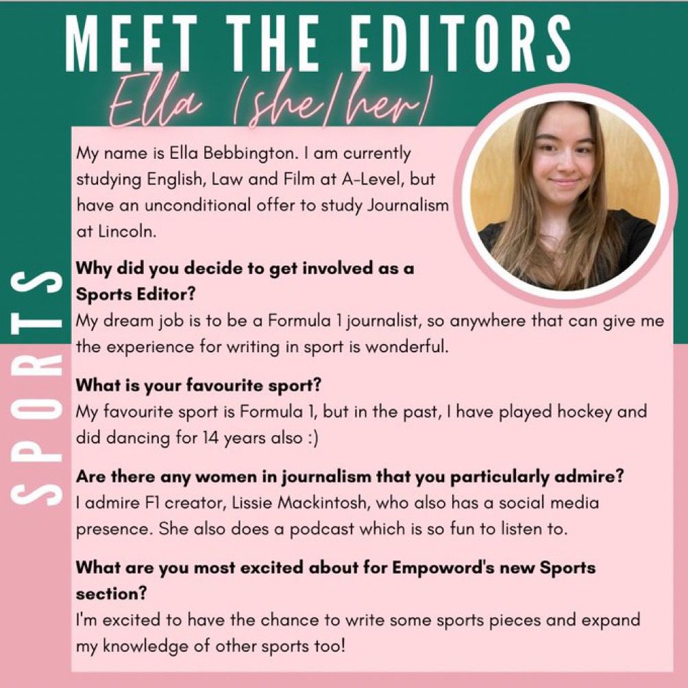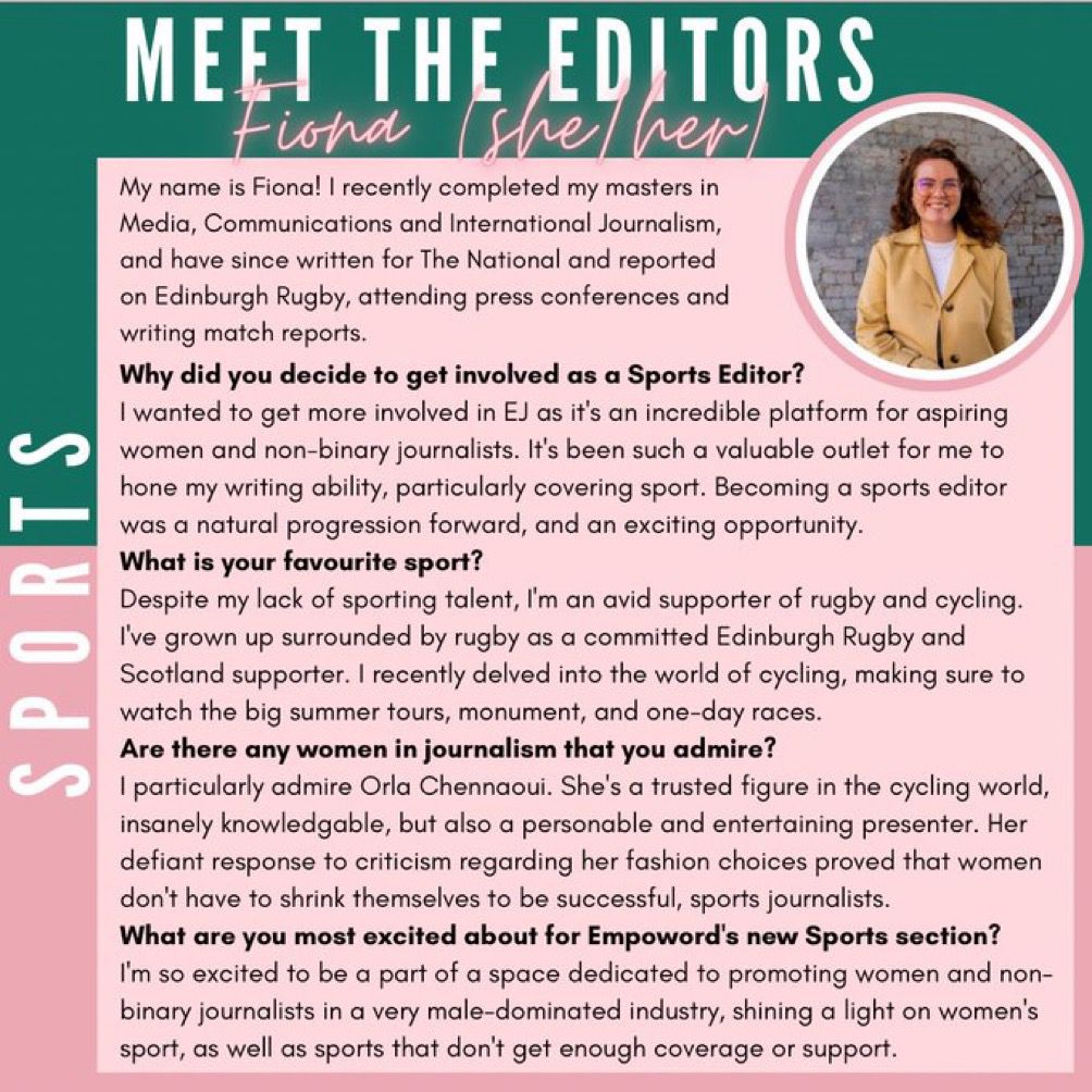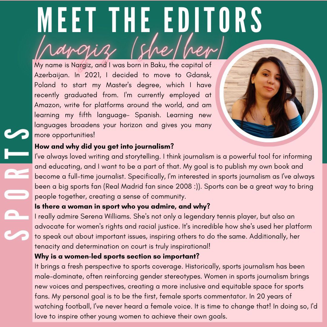 We wanted a sports section for women, led by women – and thanks to Faye’s brilliant mind and dedication, that’s exactly what we now have. A strong section set to thrive for years to come!